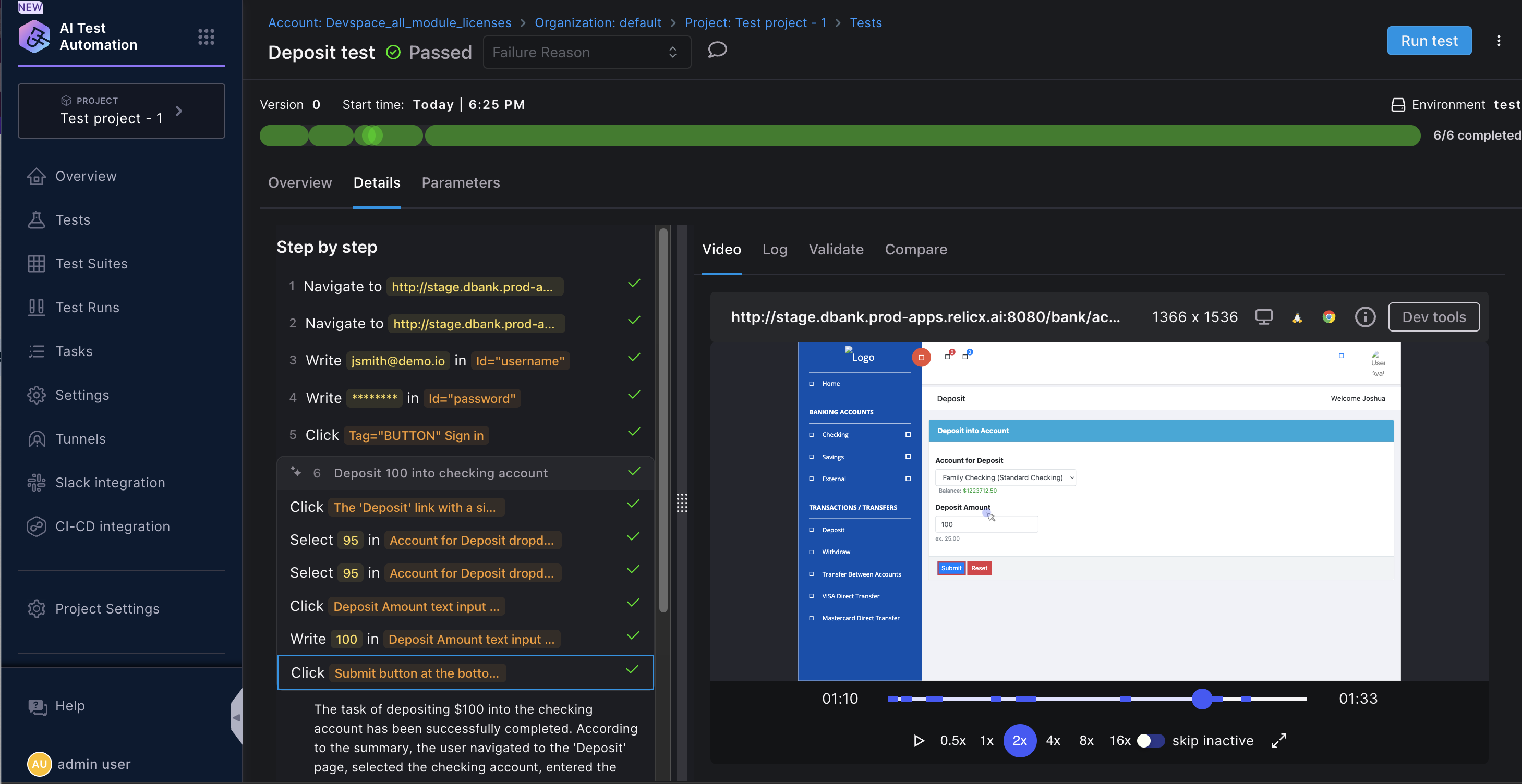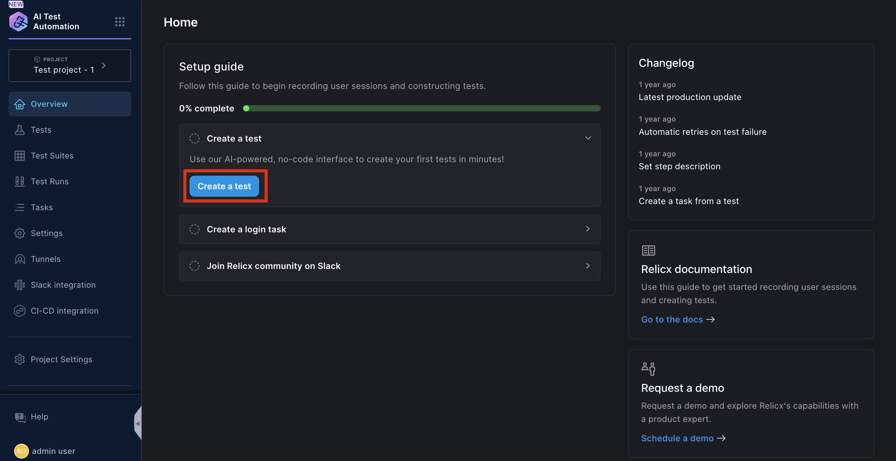 Select the project where you want to add your tests. If one doesn't exist then create a new project. Once a project is created and you select AI Test Automation, you will be prompted to add your test environment