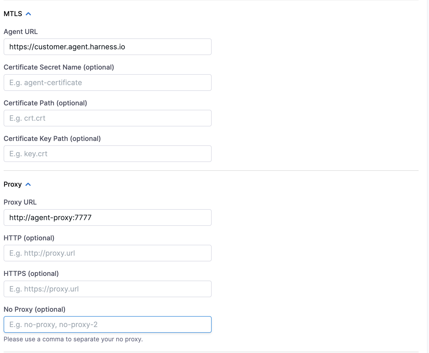 If you don't want to create Kubernetes secrets in multiple clusters, you can install the agent proxy (aka Chaos Runner agent proxy) with mTLS key and certificate and provide the proxy URL in proxy setting.
