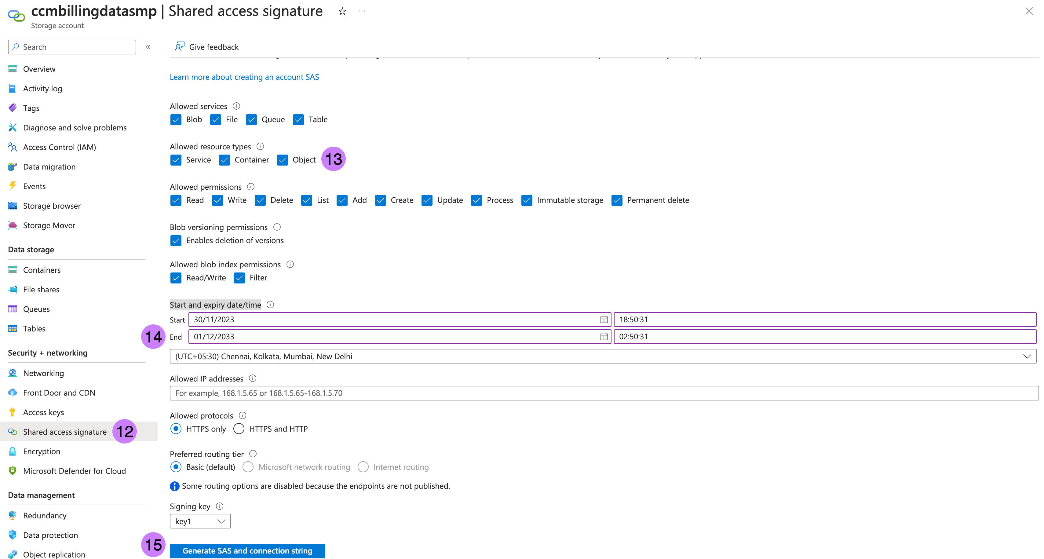 4. Enter Storage account name ccmbillingdatasmp. Note this as → storageName