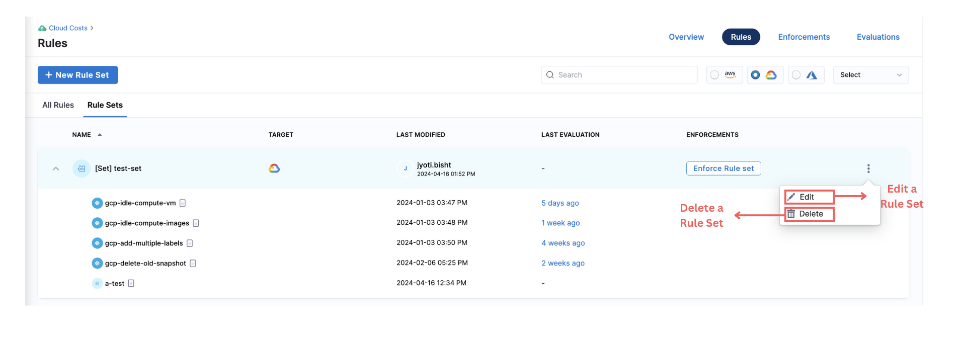 To delete a Rule Set, click on Delete from the vertical ellipsis menu (⋮).
