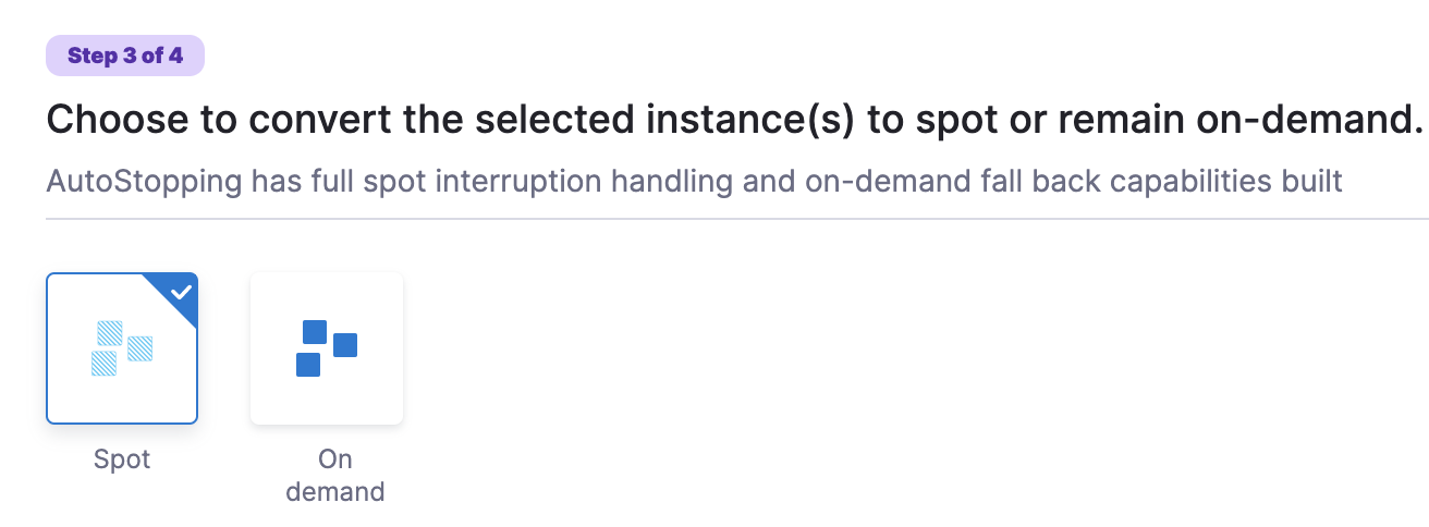 You can convert the fulfillment type of your selected instances. Select Spot or On-Demand.