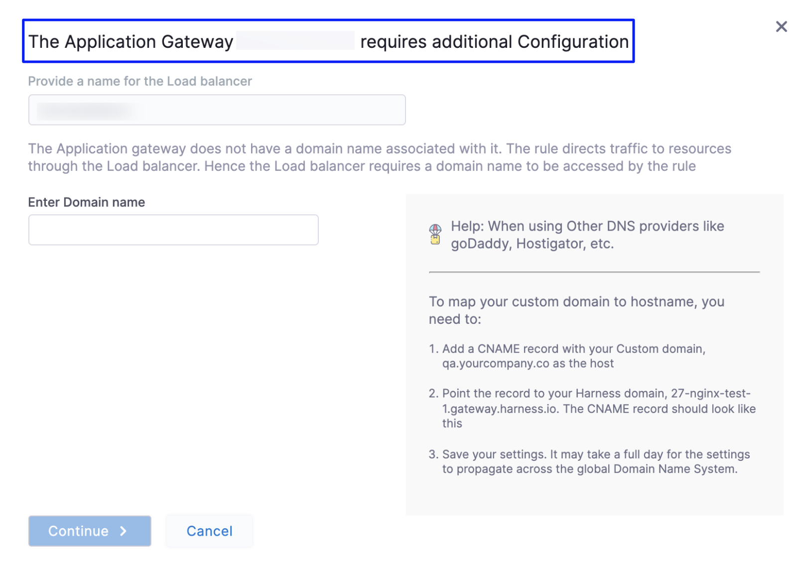 The list populates the application gateway if the application gateway has previously been created in your environment but not yet mapped to Harness. In that case, you must configure the DNS mapping settings.