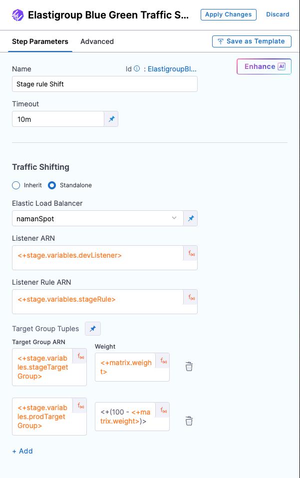 . - Add an Elastigroup Blue Green Traffic step (inherit or standalone) to begin shifting traffic incrementally.