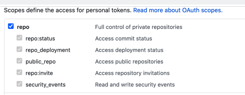 • Username and Token: Enter the username and a Github Personal Access Token for your Github account. You'll have to create a Harness secret for the password.