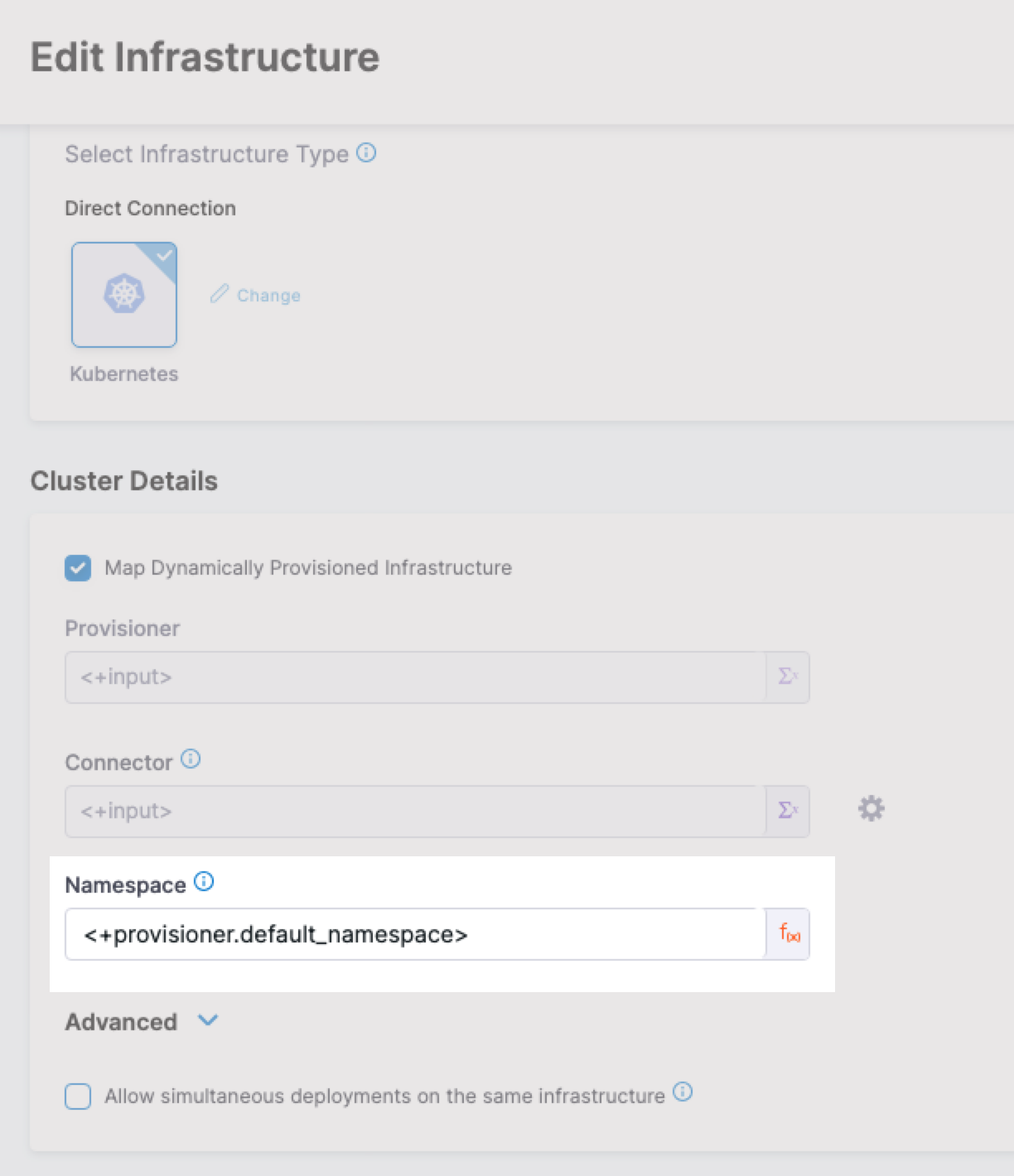 The Infrastructure Definition can point to a pre-existing cluster and namespace or Harness can dynamically provision the namespace using your provisioning scripts/templates. You must use an existing cluster in either use case.