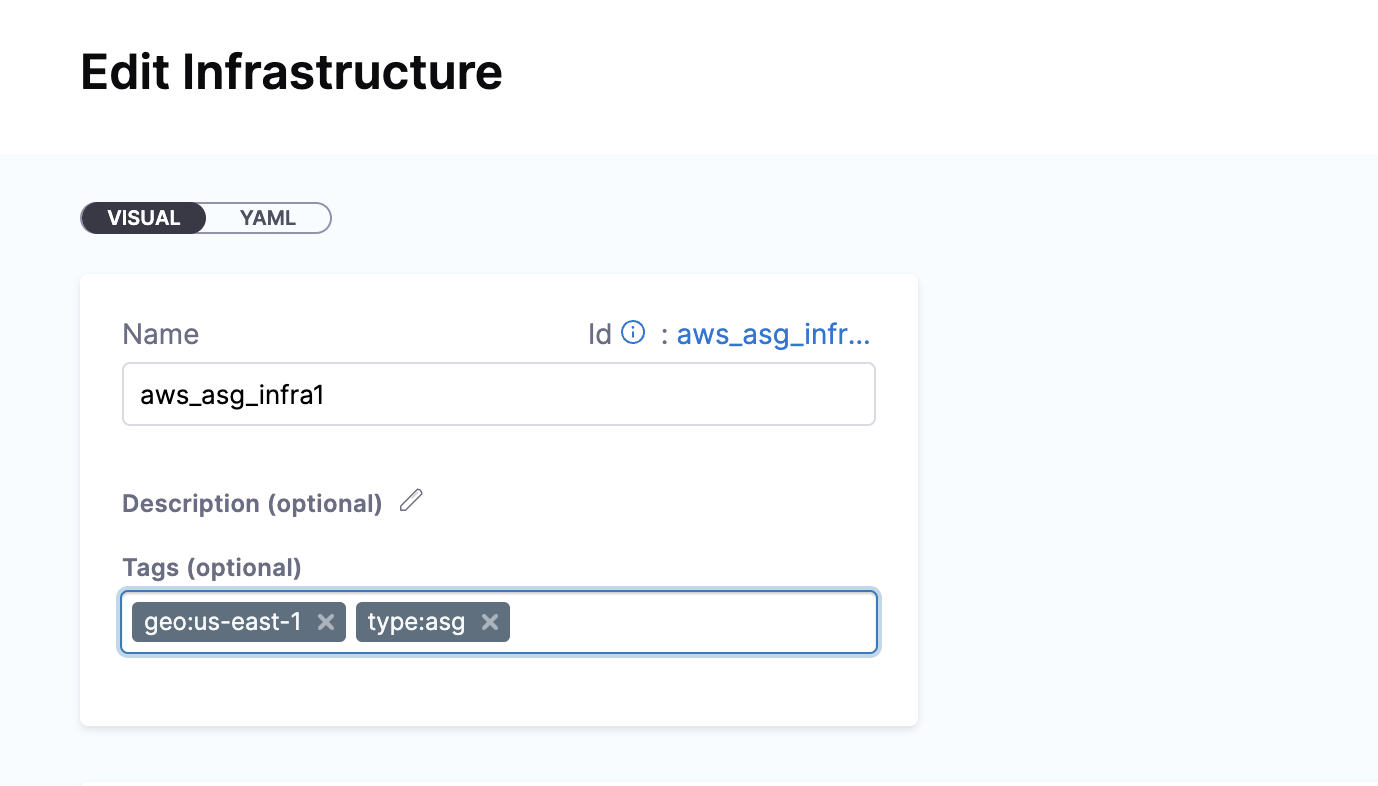 Tags can be attached to infrastructure definitions representing their characteristics. These tags can be key value pairs.