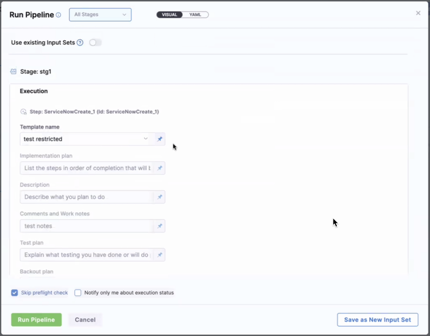 Your ServiceNow ticket is now added to your pipeline. After standard template is loaded, fields are marked editable based on Standard Change Properties