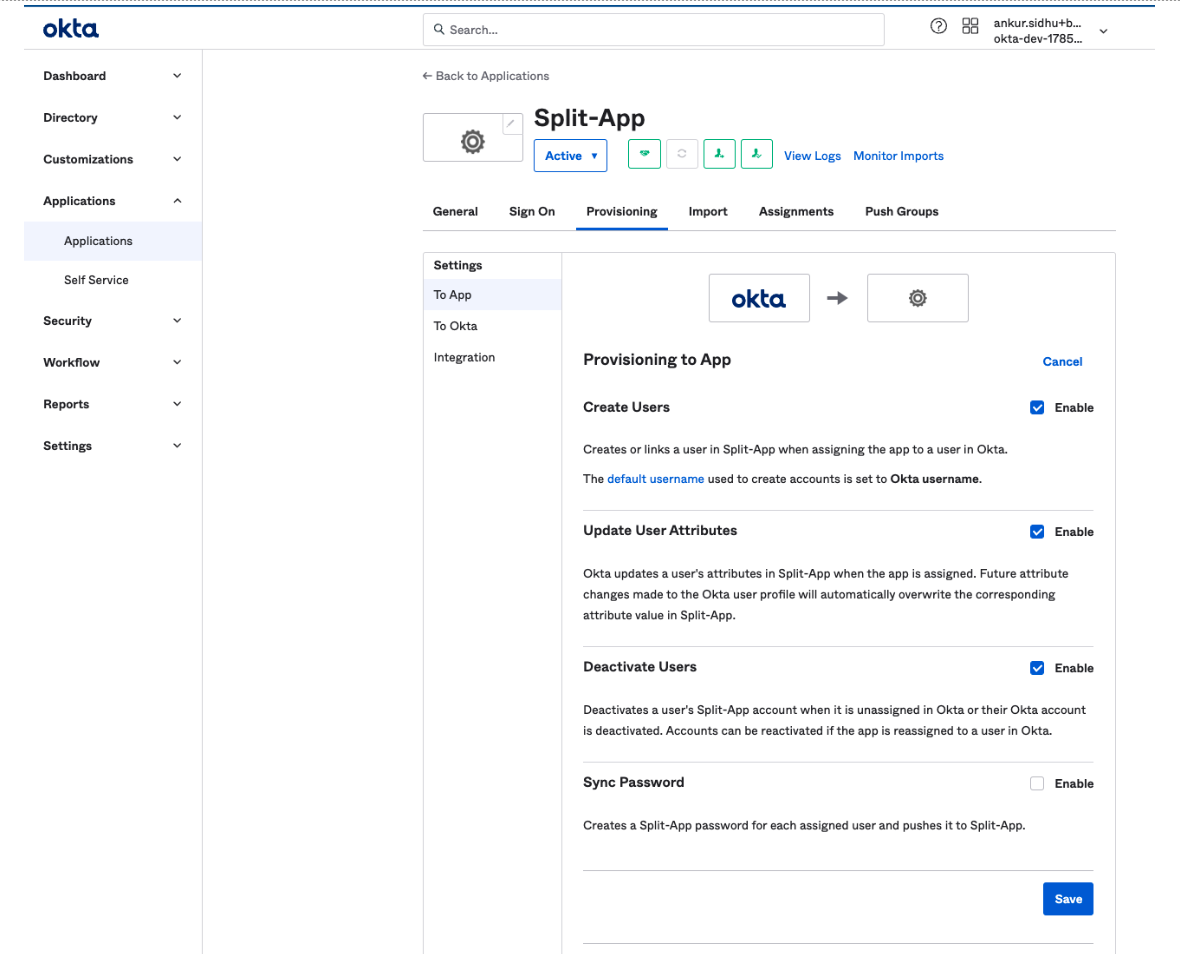 - User management actions such as Deactivate and Activate is disabled in Split. Okta administrators control the user management within Okta.
