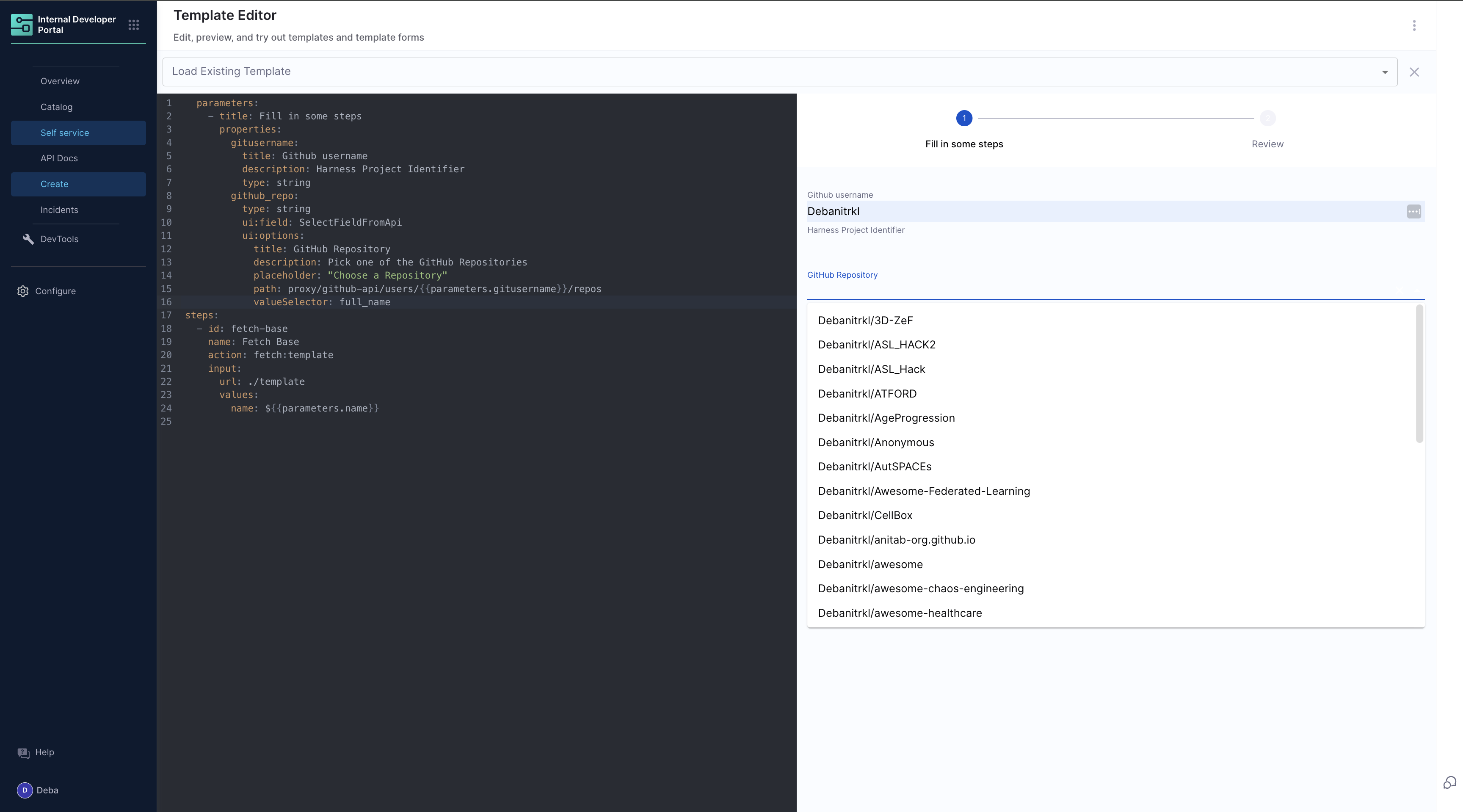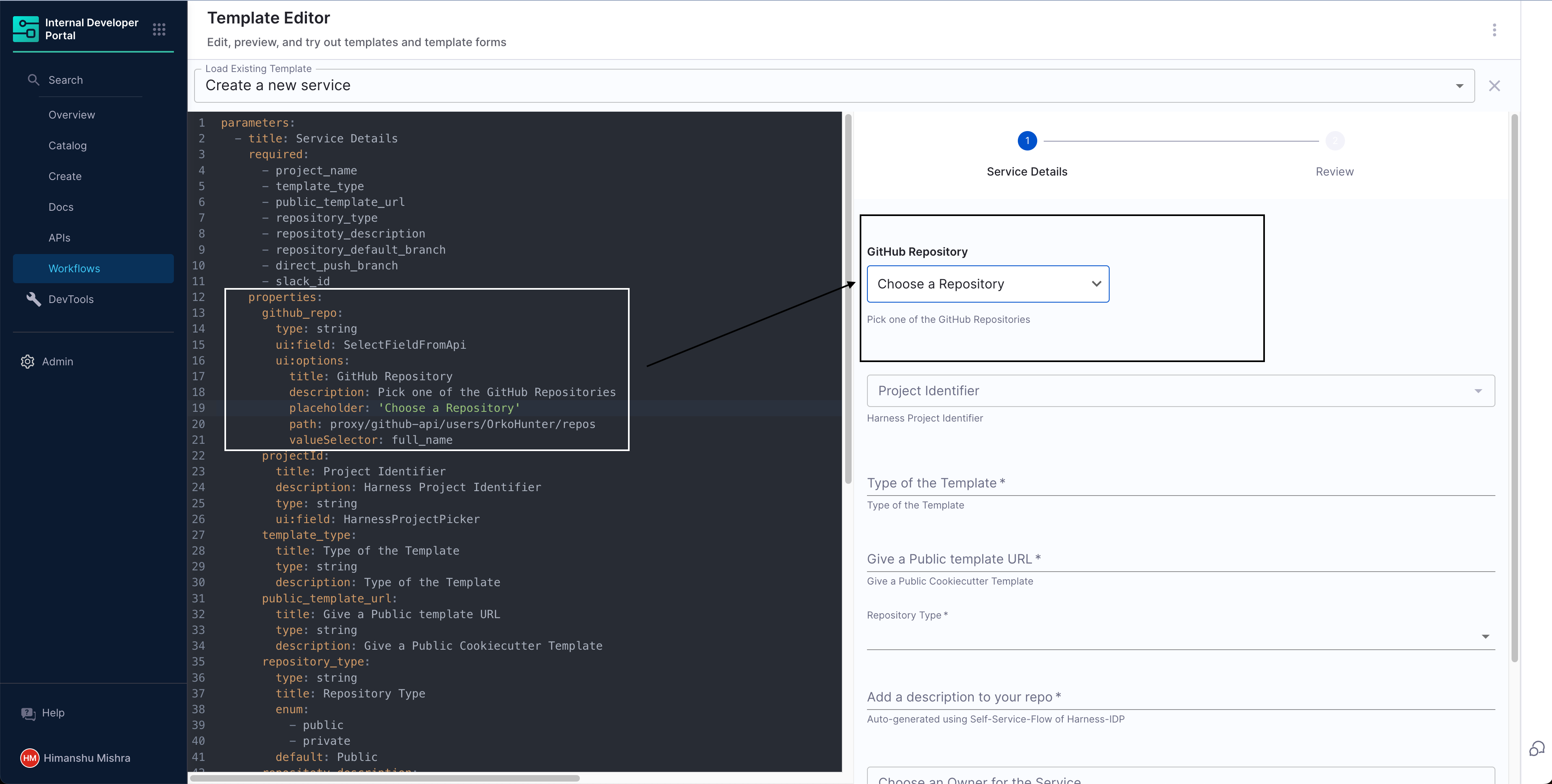 There are two steps to adding a dynamic workflow picker in Harness IDP.