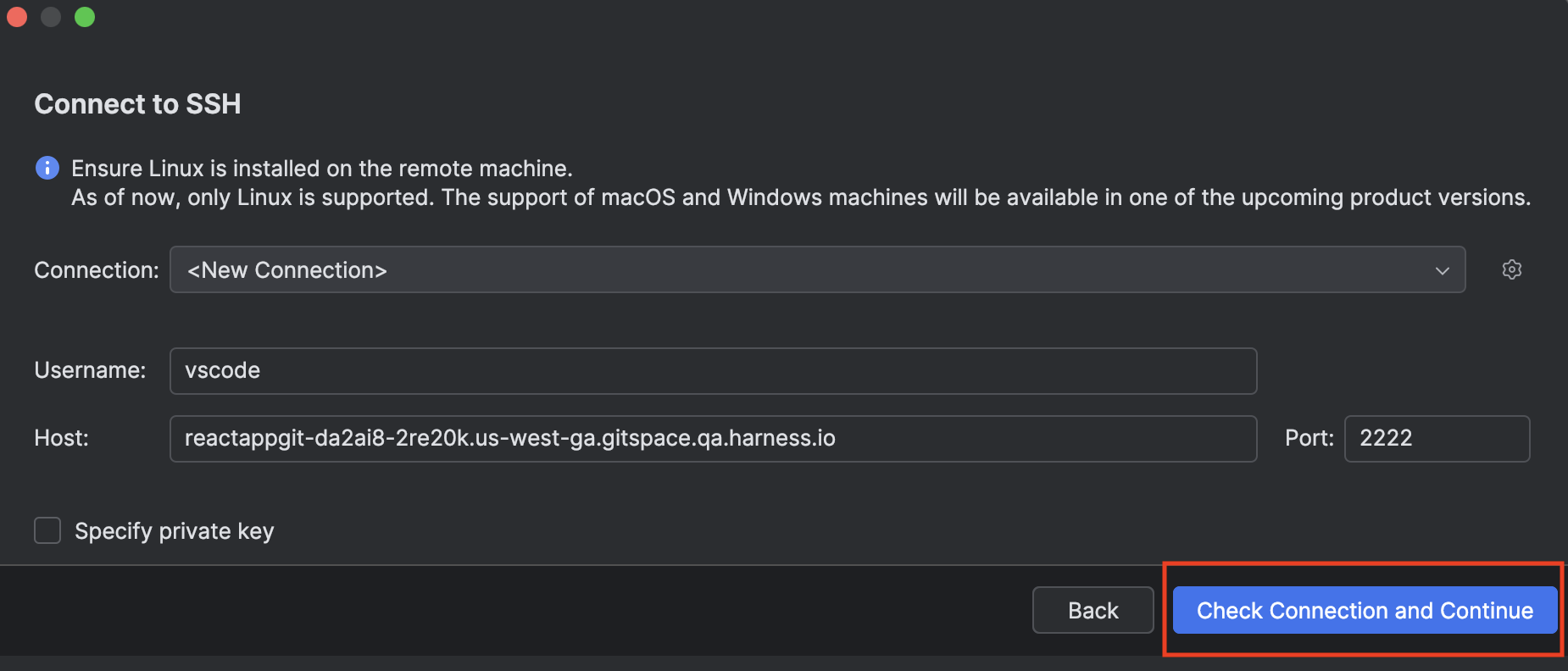 With WebStorm IDE support, Harness CDE enables seamless and efficient remote development in your Gitspaces with your IDE. This integration leverages JetBrains Gateway to establish a direct remote connection with WebStorm, eliminating the need for any prior setup.