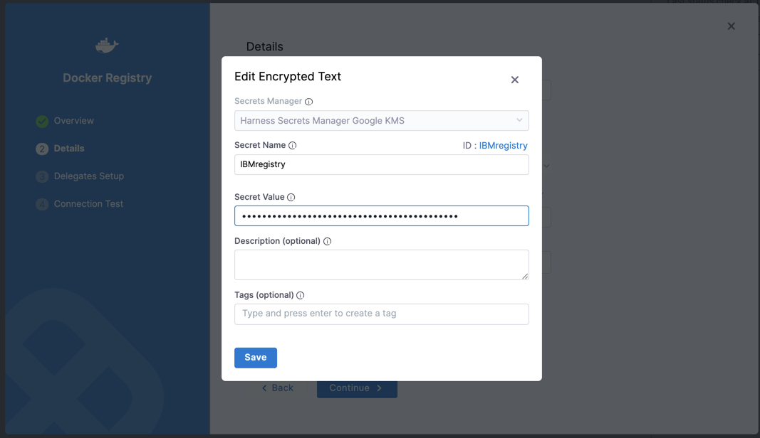 You can connect Harness to IBM Cloud Container Registry using a Harness Docker Registry Connector. The Connector uses your credentials to your IBM Cloud Container Registry and allows you to push and pull images.