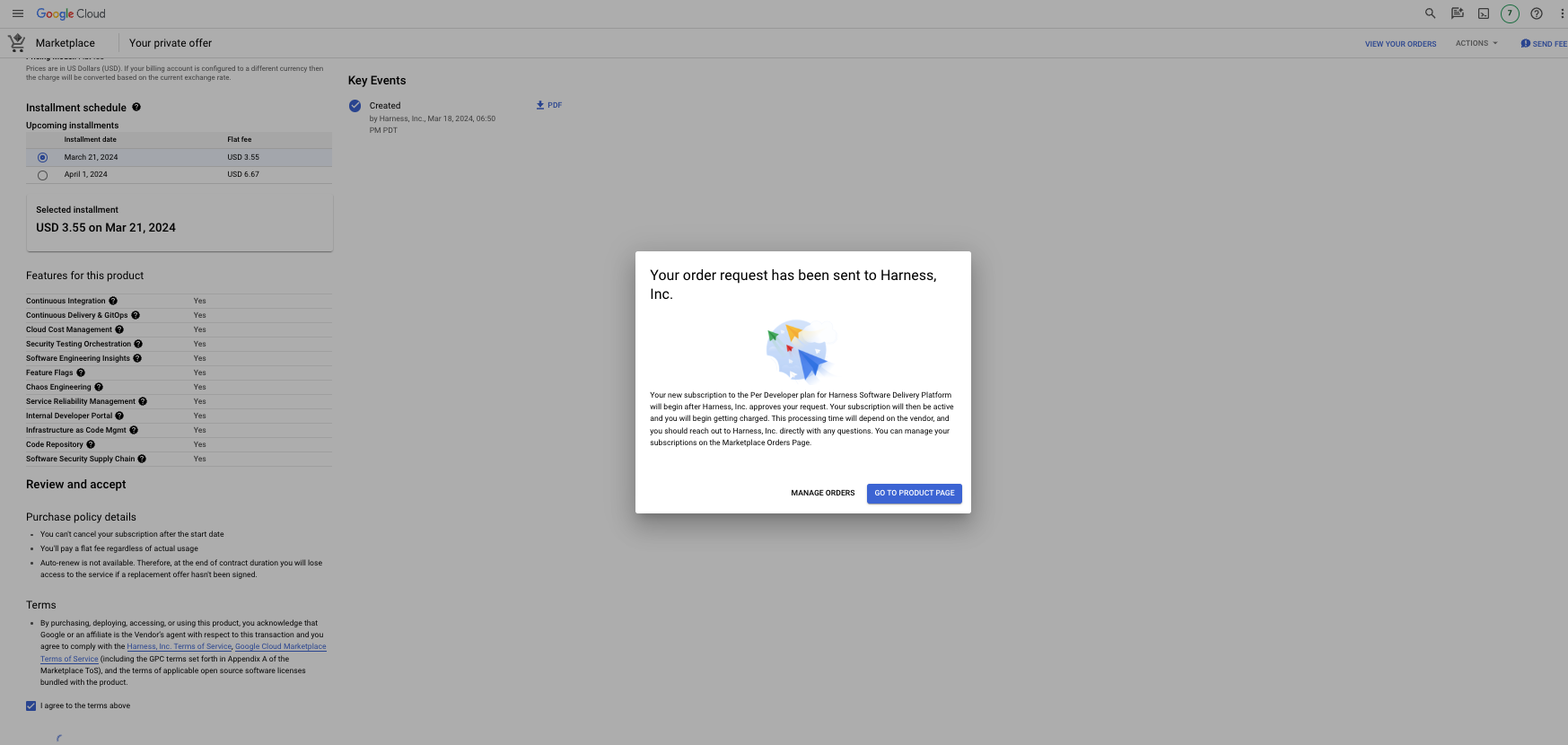 Purchase Harness products via the Google Cloud Marketplace public offer flow
