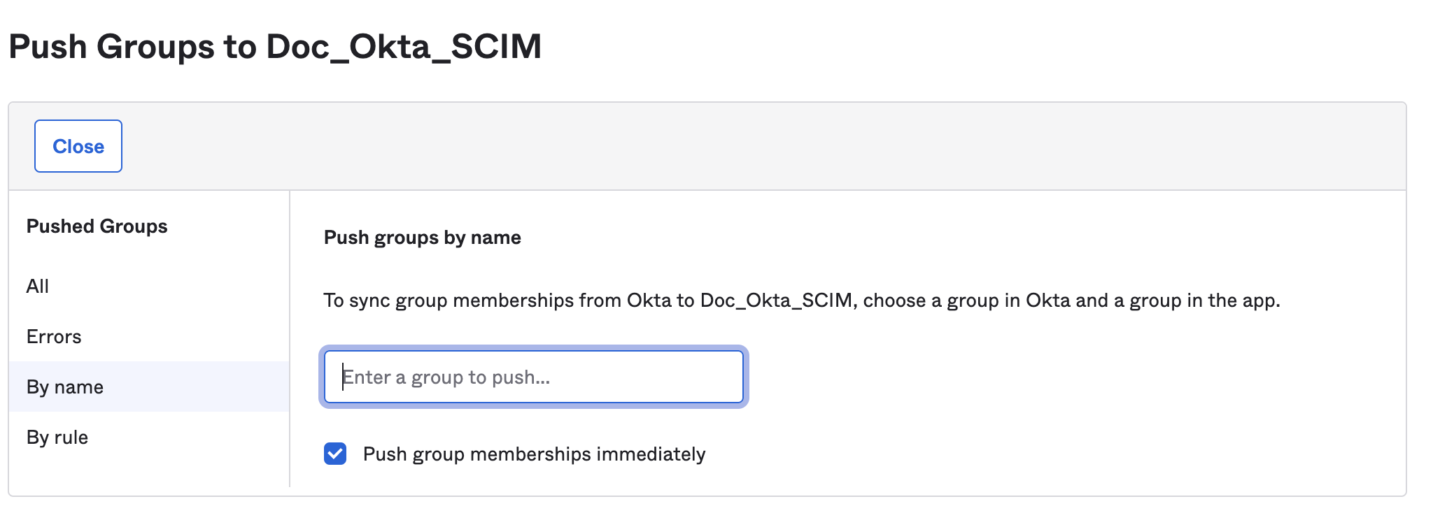 If an Okta-provisioned user group has the same name as an existing user group in Harness, Harness retains both groups. To prevent confusion, you can rename the existing Harness group.