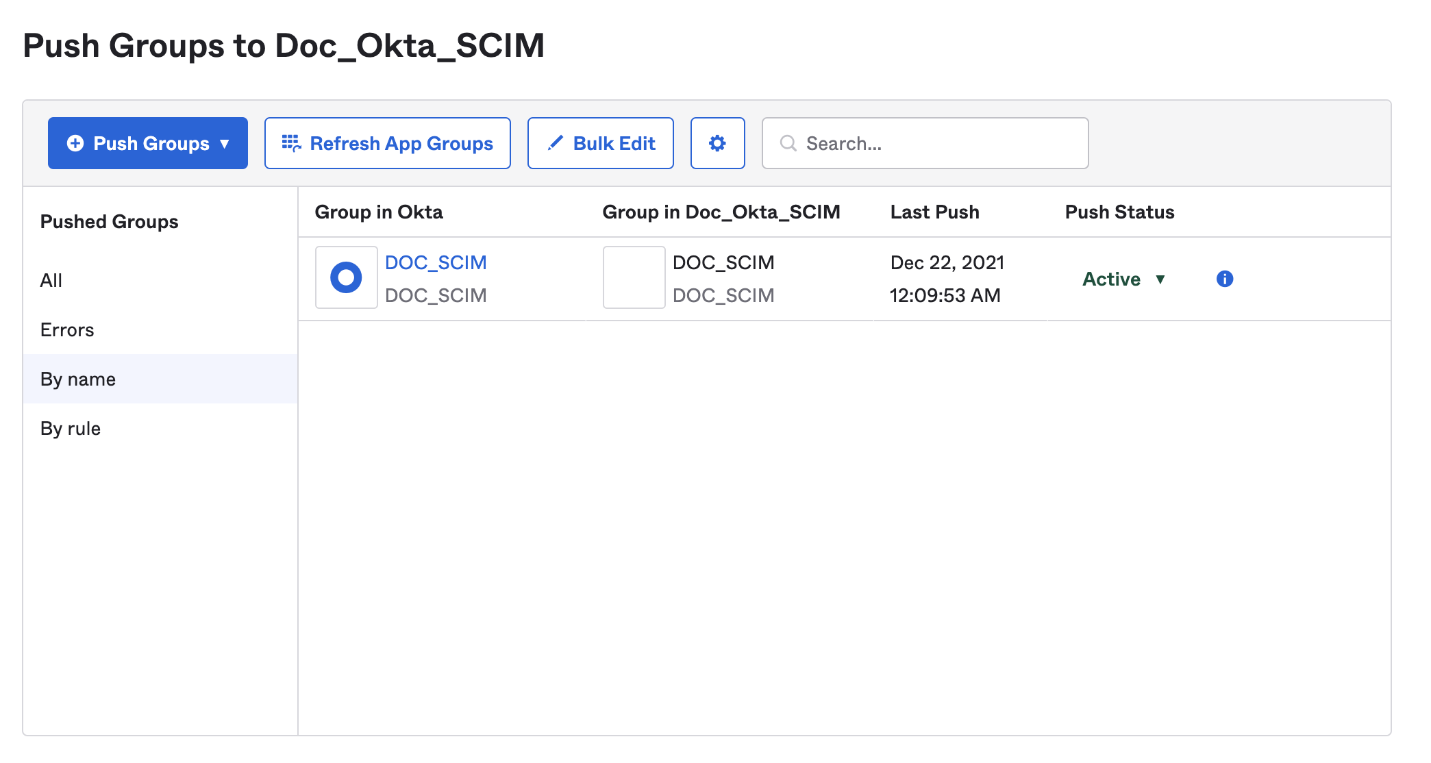 Active and successfully pushed groups are listed in your Harness account. The group members are also provisioned as Harness users when you push the group.