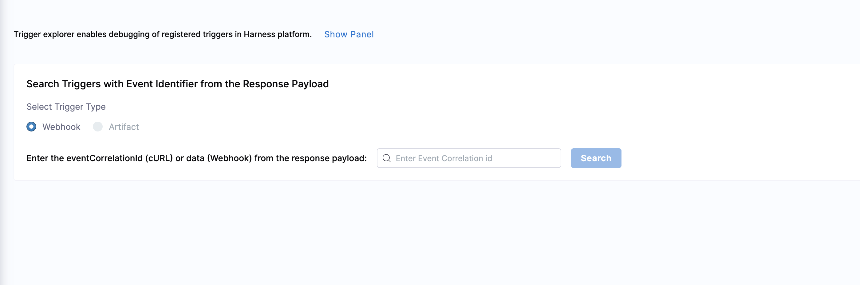 After a trigger runs, you can use the Trigger Explorer to troubleshoot cURL or webhook initiated failures. For cURL, you enter the eventCorrelationId from the response. For webhooks, you enter the data value from the webhook response payload.