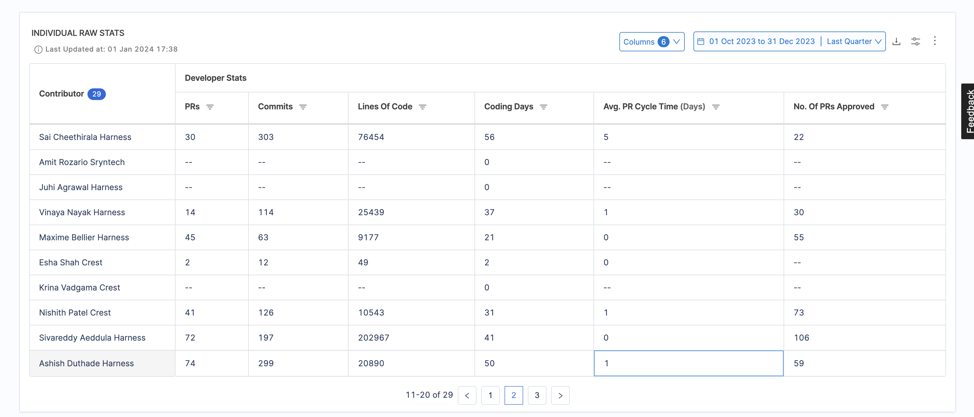 - Leadership and Collaboration: Leadership and collaboration measures developer teamwork and contribution to peer reviews.