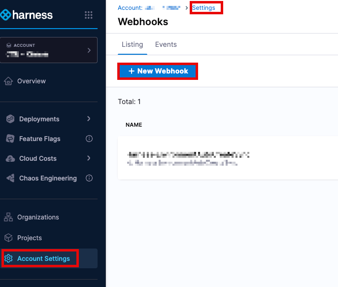 Account Level: Account Settings → Account-level Resources → Webhooks → New Webhook Organization Level: Organization Resources → Organization-level Resources → Webhooks → New Webhook