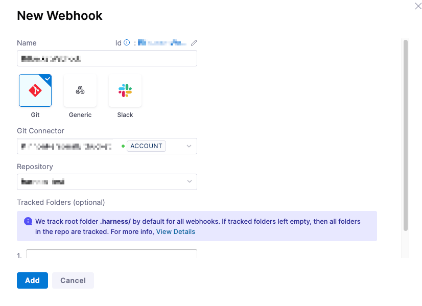 4. In Folder Path, specify the directory (e.g., .harness/). This is optional, and if none are selected, all folders will be utilized